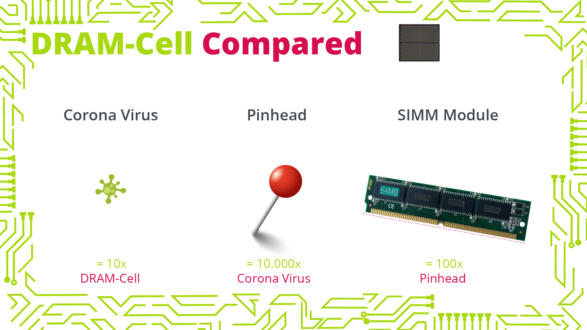 Did you know that with today’s processing nodes, you can squeeze 10 DRAM cells in 1 coronavirus? Today memory cells are so small that they can only contain 10,000 electrons. They are tiny, delicate structures that have to be heaved to crude bit lines to check if their load is 0 or 1. With this in mind, it’s actually a little miracle that they work reliably and that DRAM and flash memory roughly constitute 30% of all semiconductor sales in the world. Today they are operating for years in Mars-based rovers, landing equipment on comets and basically being part of all electronic equipment on earth.