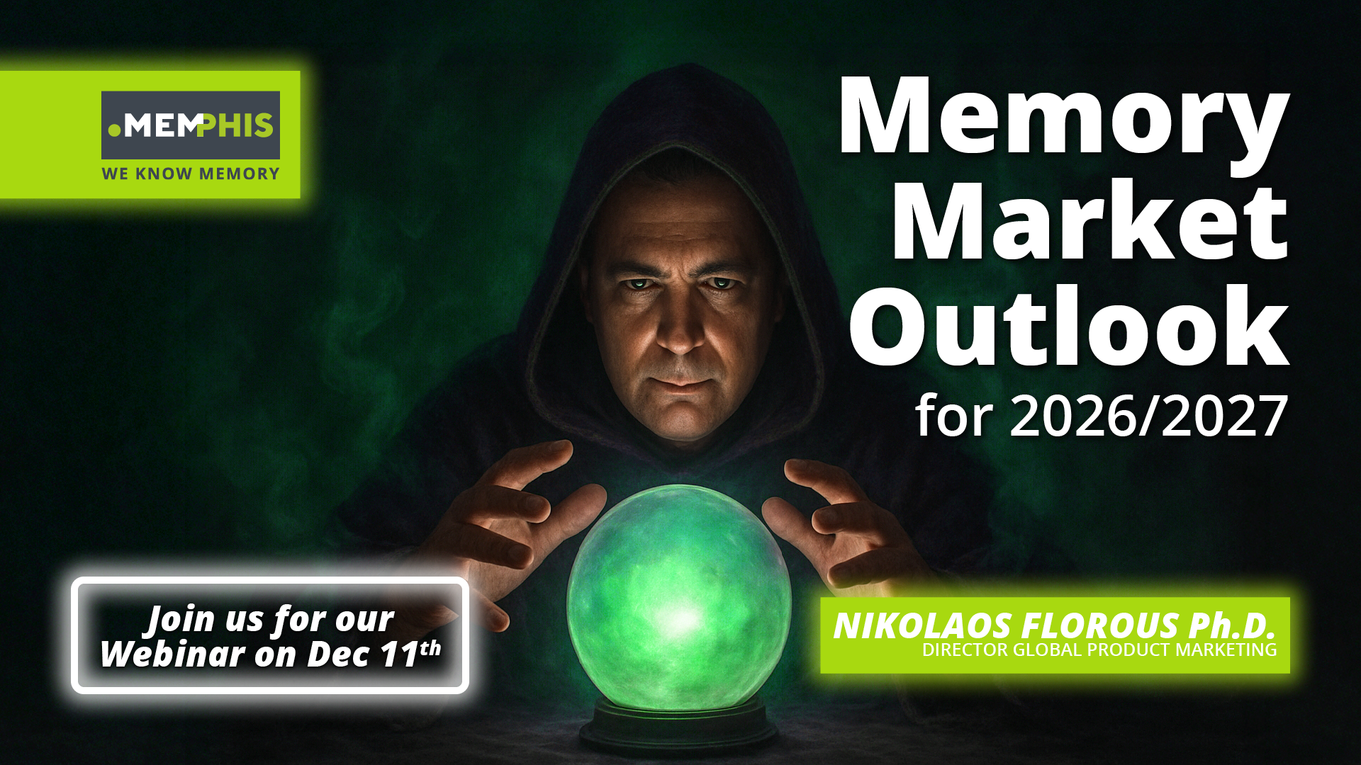 Join MEMPHIS Electronic for its next webinar on December 11, where Nick Florous, Global Product Marketing Director, will deliver an in-depth analysis of the key forces shaping this new cycle in the memory industry and explore both the disruptions and opportunities in 2026 and beyond.